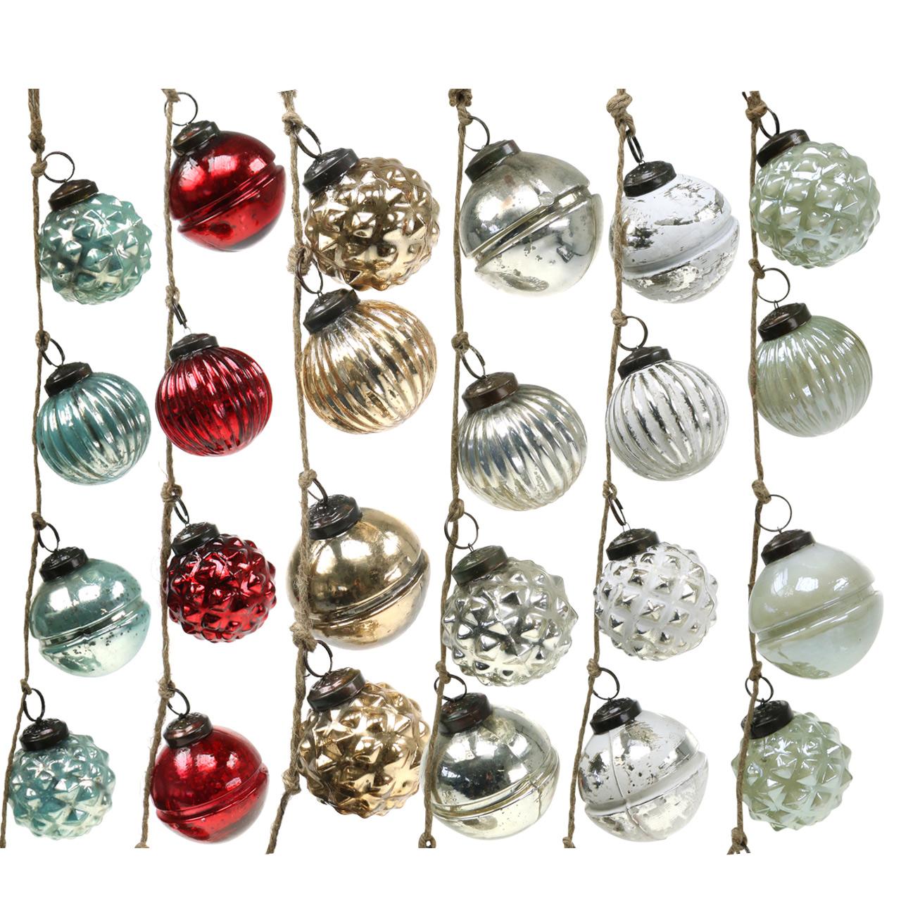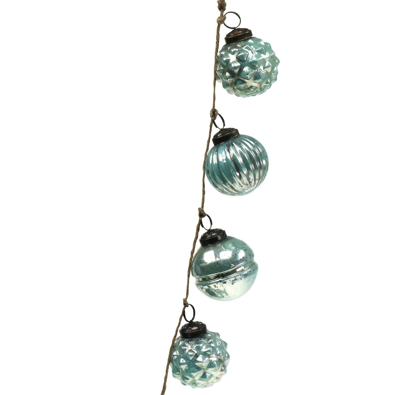 What a great brilliance: in an antique look with different surfaces, a total of twelve distinctive Christmas tree balls together with a jute cord create a charming garland. You can choose between six different colors using the tab on the right.