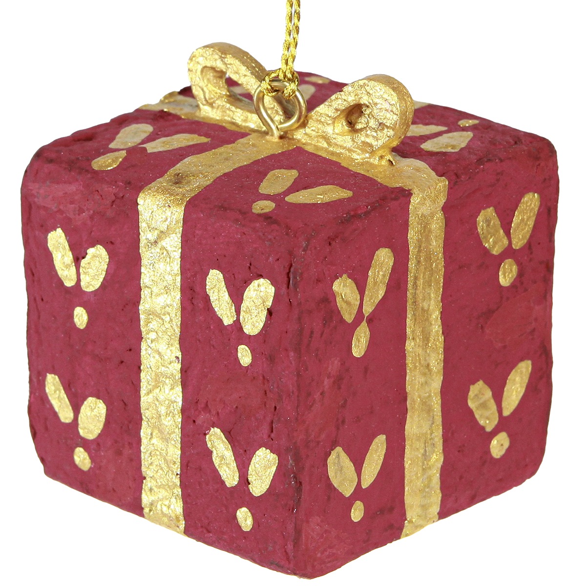 Add traditional charm to your Christmas tree with our hand-painted papier-mâché hanging Christmas decorations. The elegant gift packages, hand-painted in red, green and gold, shine with a noble gold bow and a practical hanger. This magical Christmas tree decoration offers you versatile decoration options: decorate windows, door wreaths or shop windows and bring a festive atmosphere to your home or office.