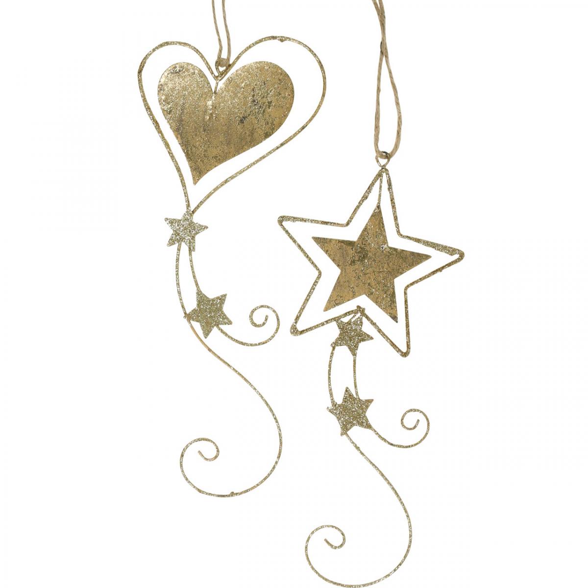 Christmas decoration pendant Christmas golden heart star 4pcs