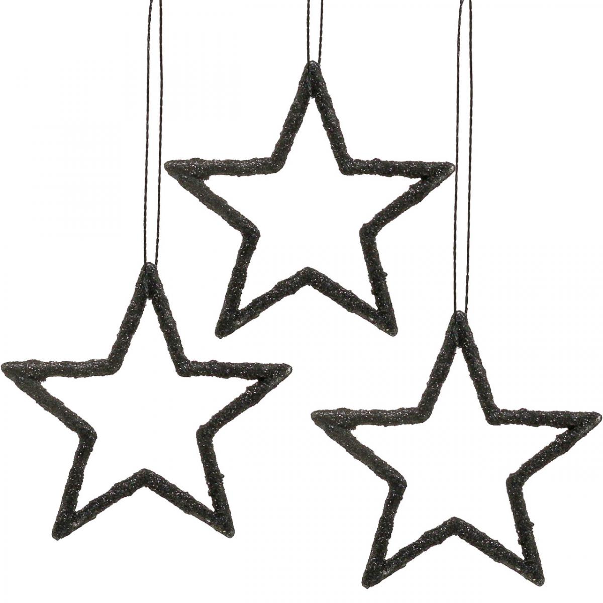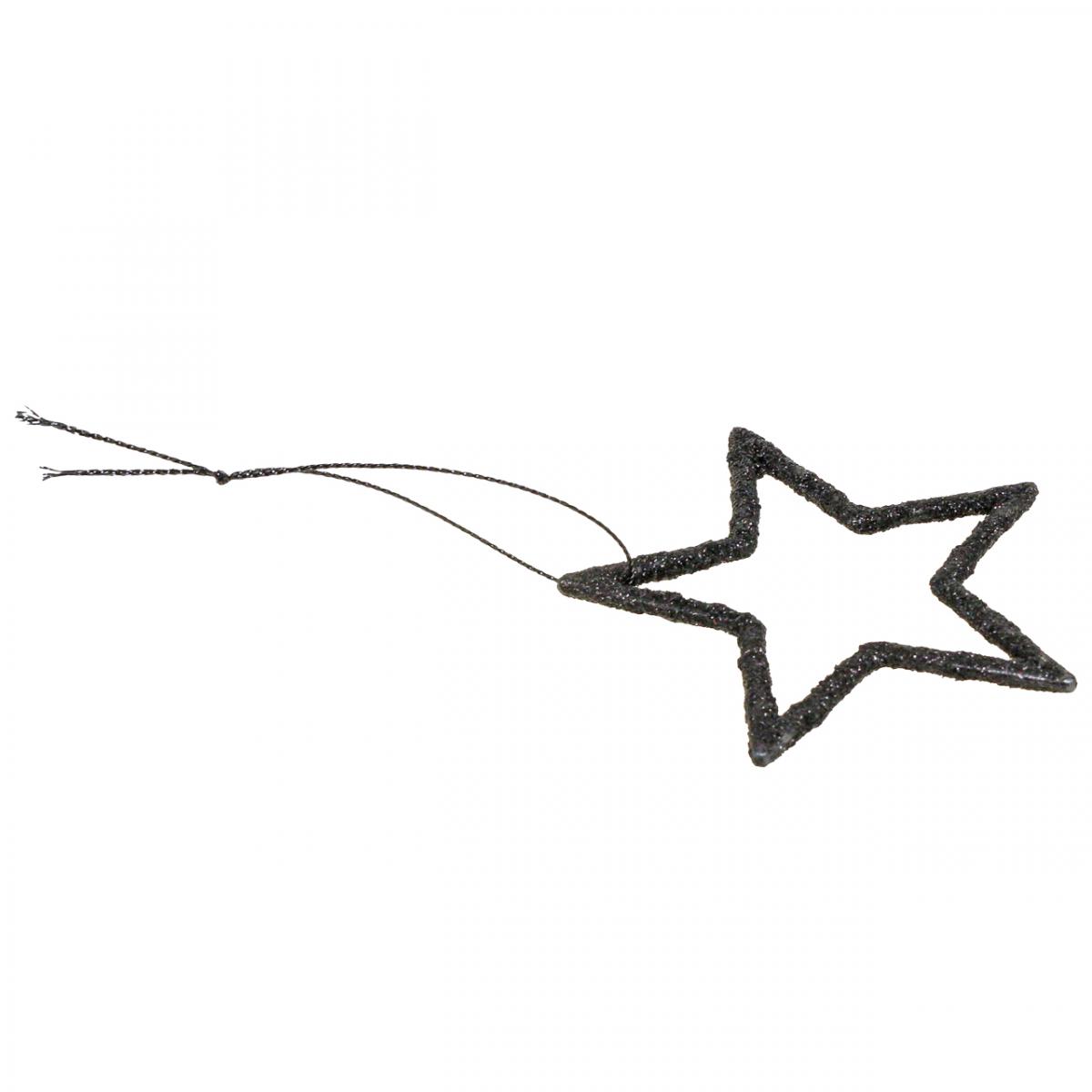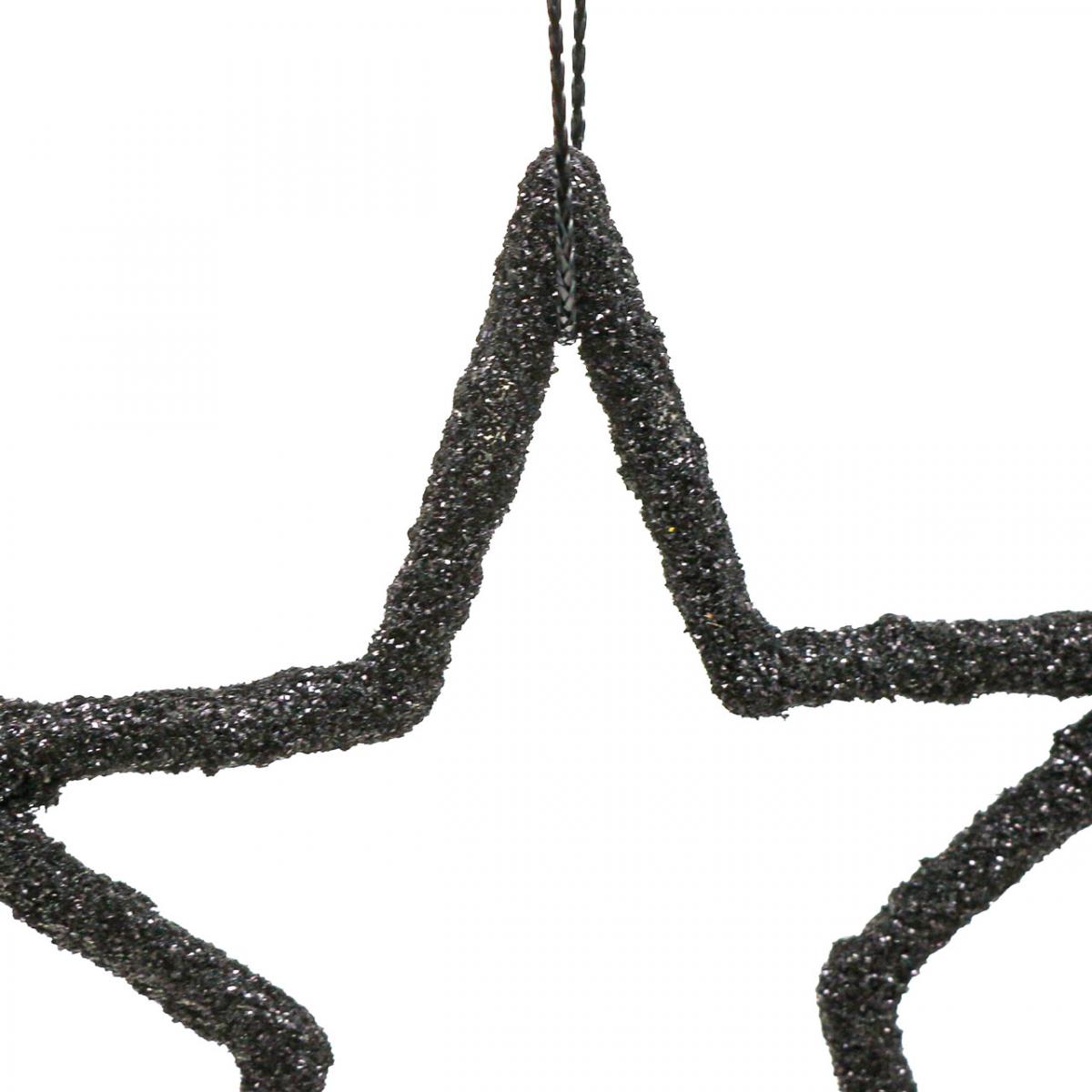 Christmas decoration star pendant black glitter 7.5cm 40p