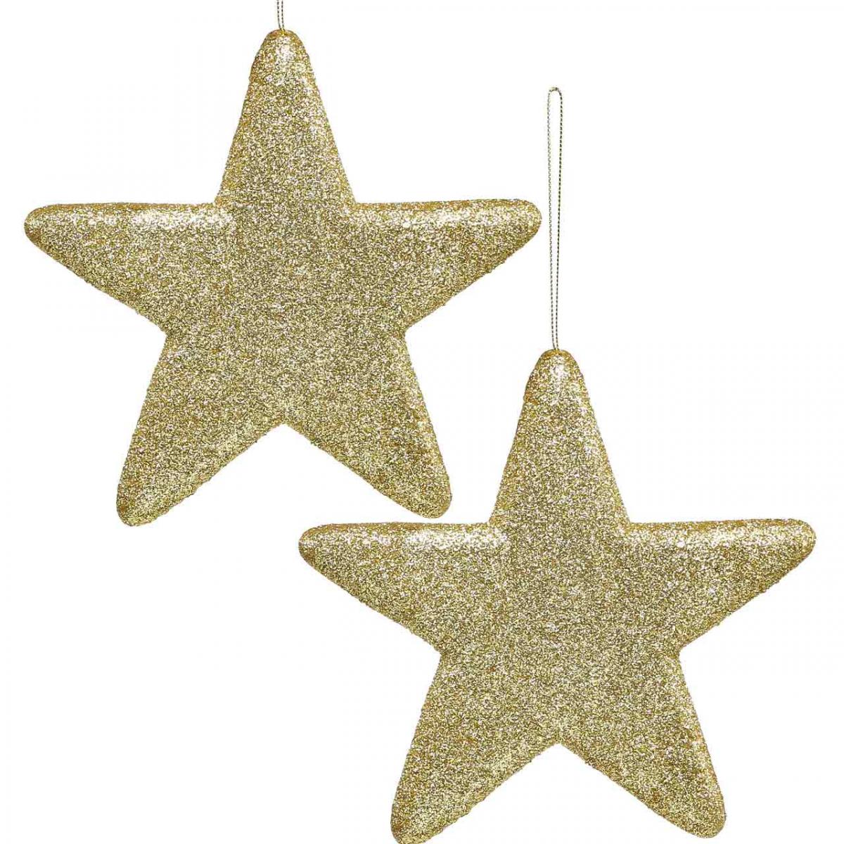 Christmas decoration star pendant golden glitter 18.5cm 4pcs