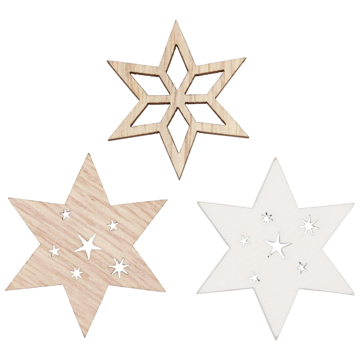 Christmas decoration wooden stars white/natural Ø4cm 72 pcs