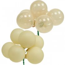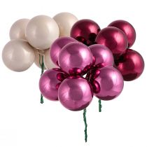 All Christmas baubles can either be hung or glued onto wreaths, garlands and table décor such as centrepieces or candleholders. Our mini Christmas baubles are a great idea for decorative plates, small trees or to create Christmas decorations in a glass jar, in a bowl or on a tray.Many small Christmas baubles in our shop come with an attached piece of coated wire. This is perfect for decorating bouquets and to attach baubles to wall décor without using glue. Especially when you decorate with real fir twigs, you might want to remove your mini Christmas baubles after the festivities and use them again next year – perhaps combining them with a new colour?