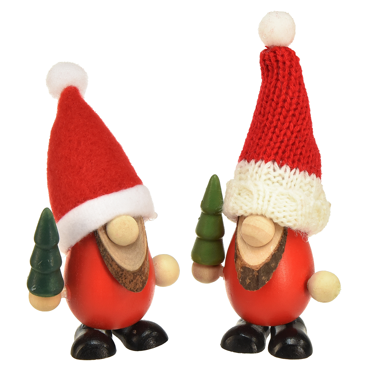 Christmas gnome decoration gnome wood red green H10.5/12cm 6pcs