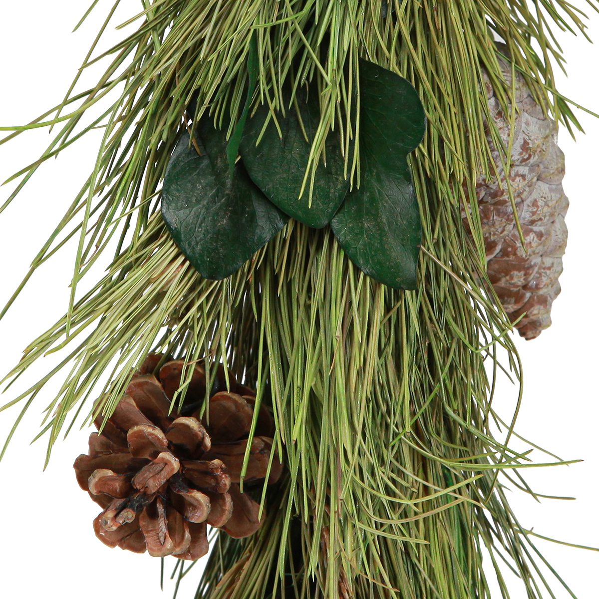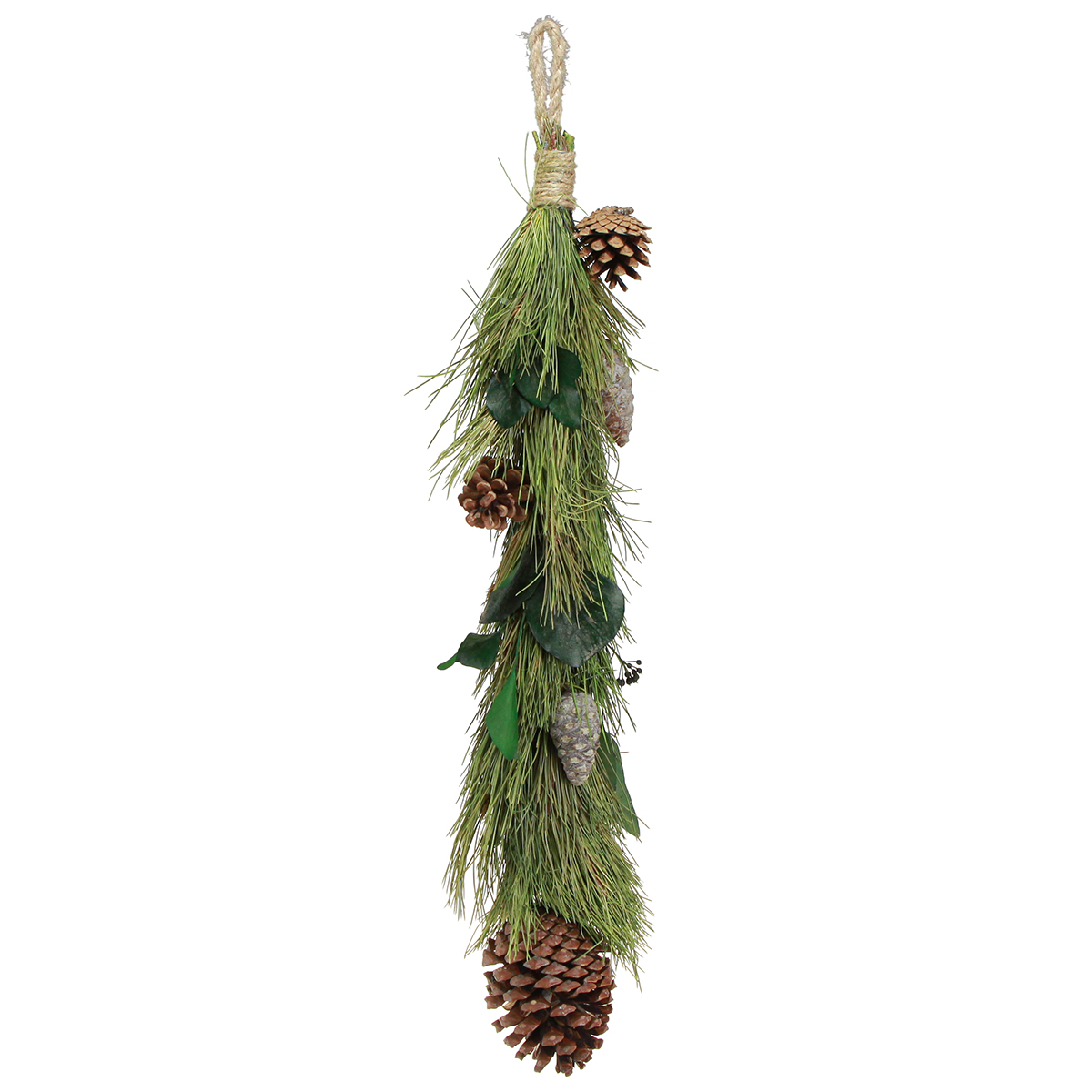 Material: real pine needles, real cones, eucalyptus leaves/buds, preserved, jute, metal