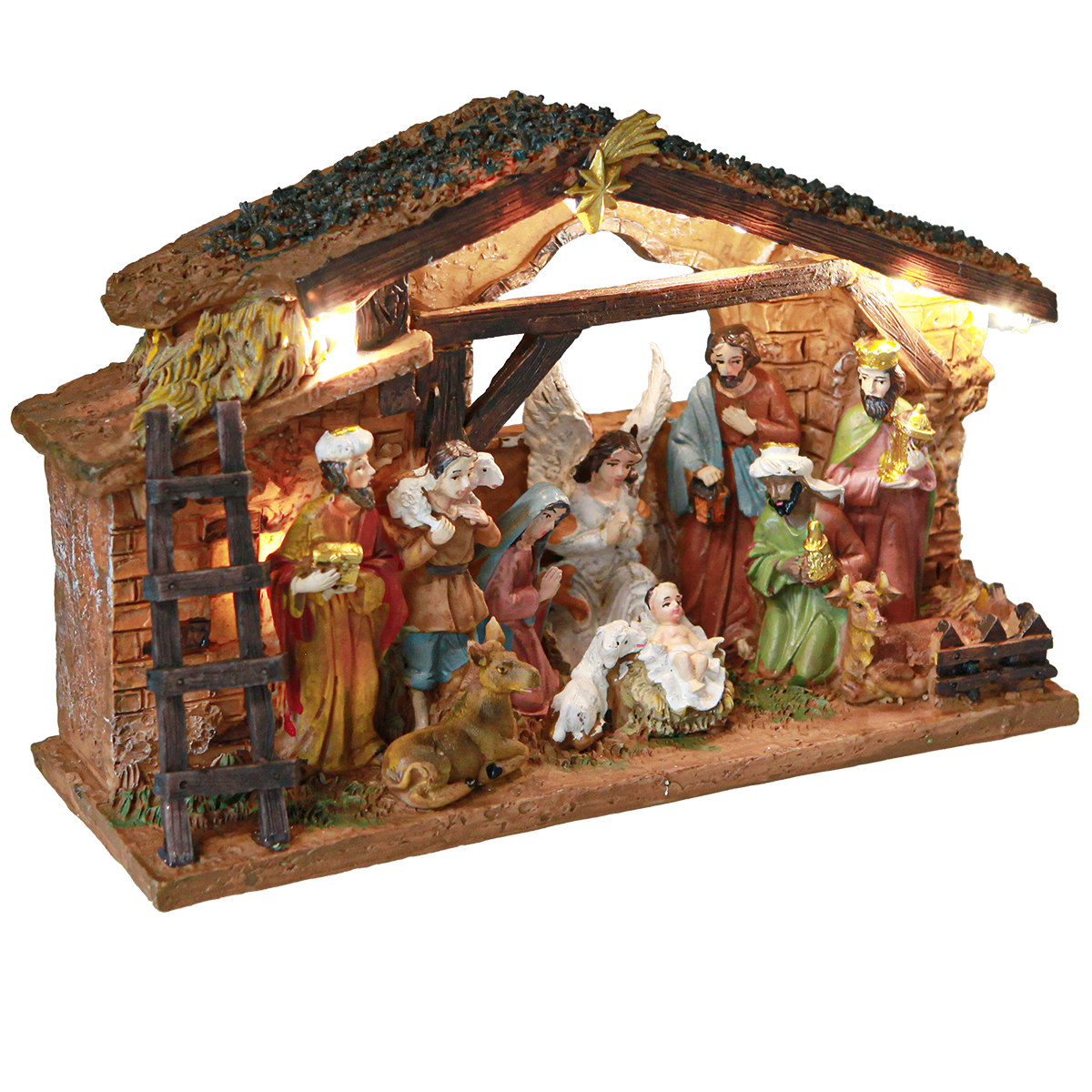 Christmas Nativity Scene with Figures and LED Hand Painted 23×14cm
