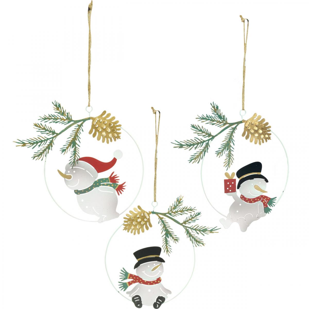 Christmas pendant snowman decoration ring metal Ø14cm 3pcs