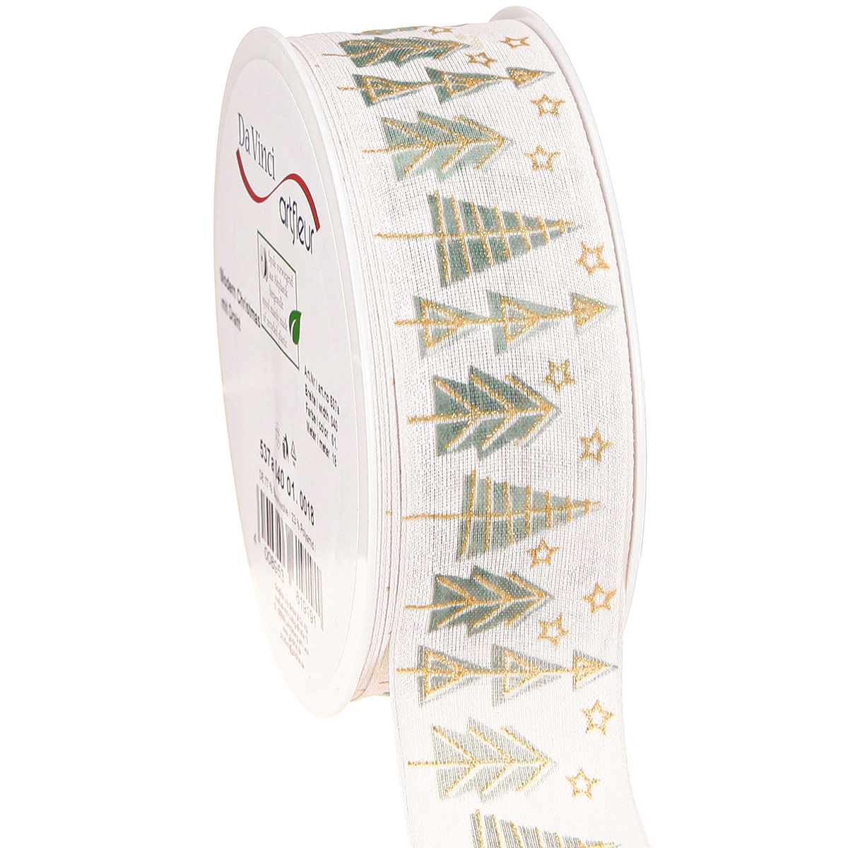 Christmas ribbon fir gift ribbon white gold 40mm 18m