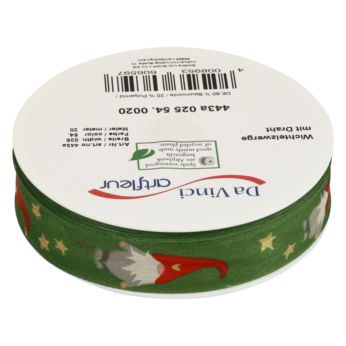Product name: Christmas Ribbon Gnome Green 25mm 20m