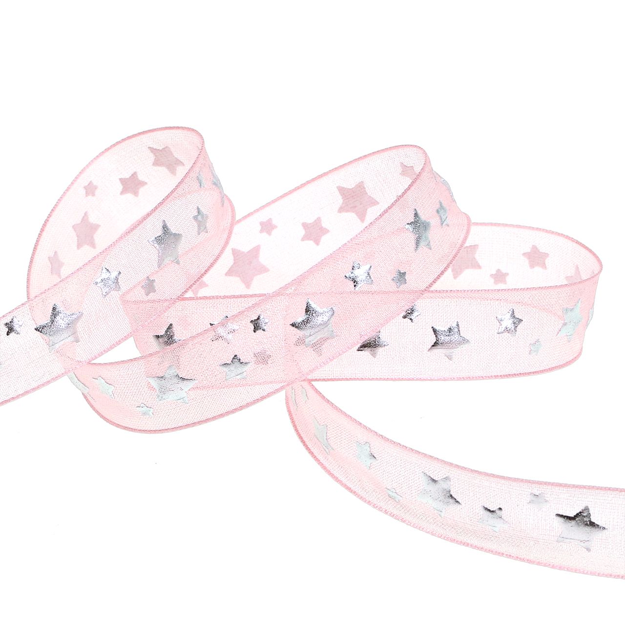 Product name: Christmas ribbon organza pink with star motif 15mm 20m