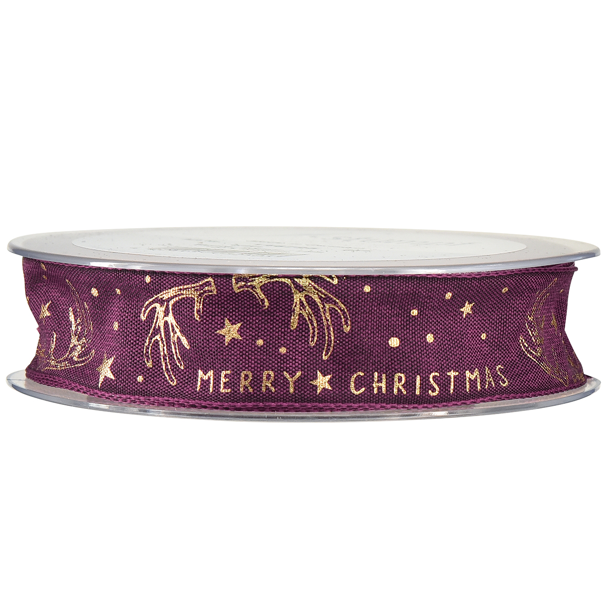 Christmas ribbon purple gold star antler decoration W25mm L15m