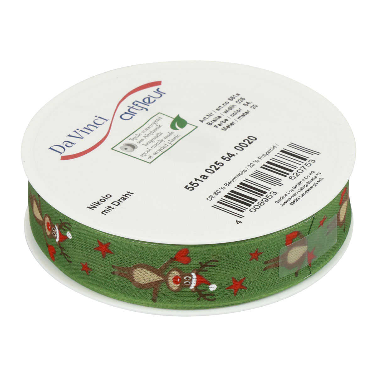 Product name: Christmas ribbon reindeer green Christmas ribbon 25mm 20m