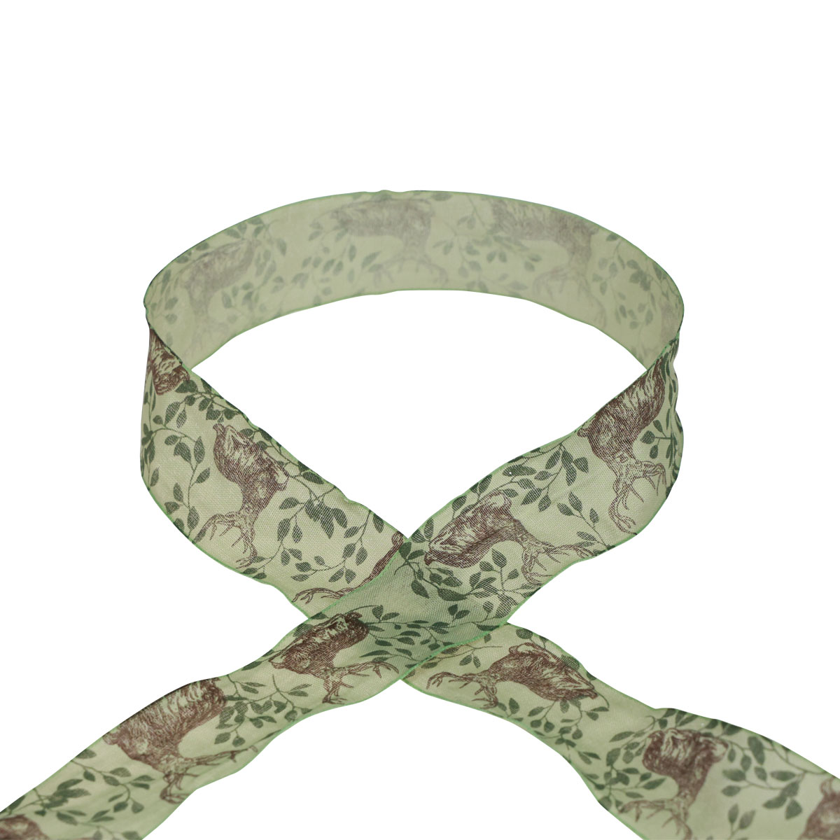 Christmas ribbon with deer motif ribbon light green 40mm 20m