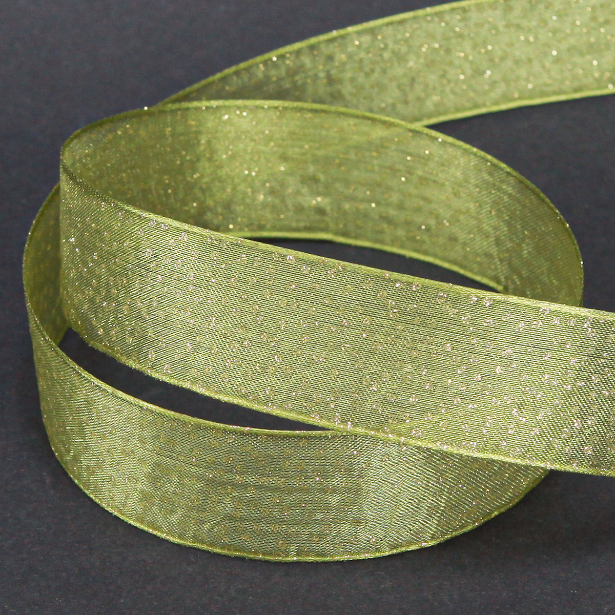 The light green Christmas ribbon with glitter dots is approximately 20 meters long and approximately 25 millimeters wide. It is made of 59% polyester and 41% polyamide. The silk ribbon comes on a practical roll made of recycled plastic.