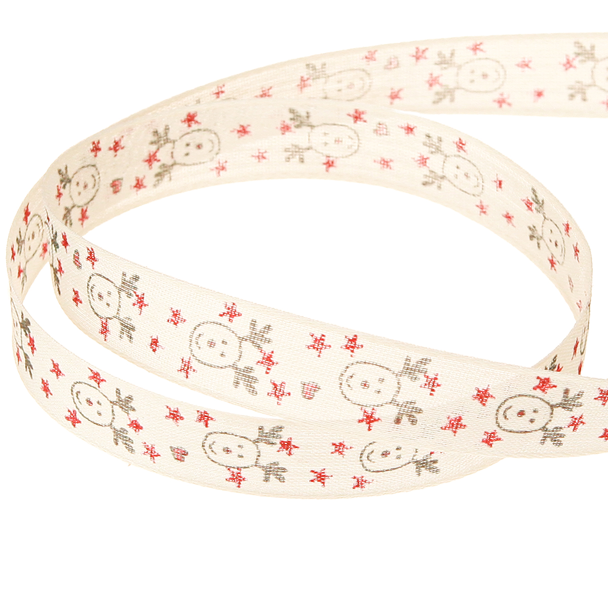 Christmas ribbon with reindeer white cream sturdy edge 15mm 18m