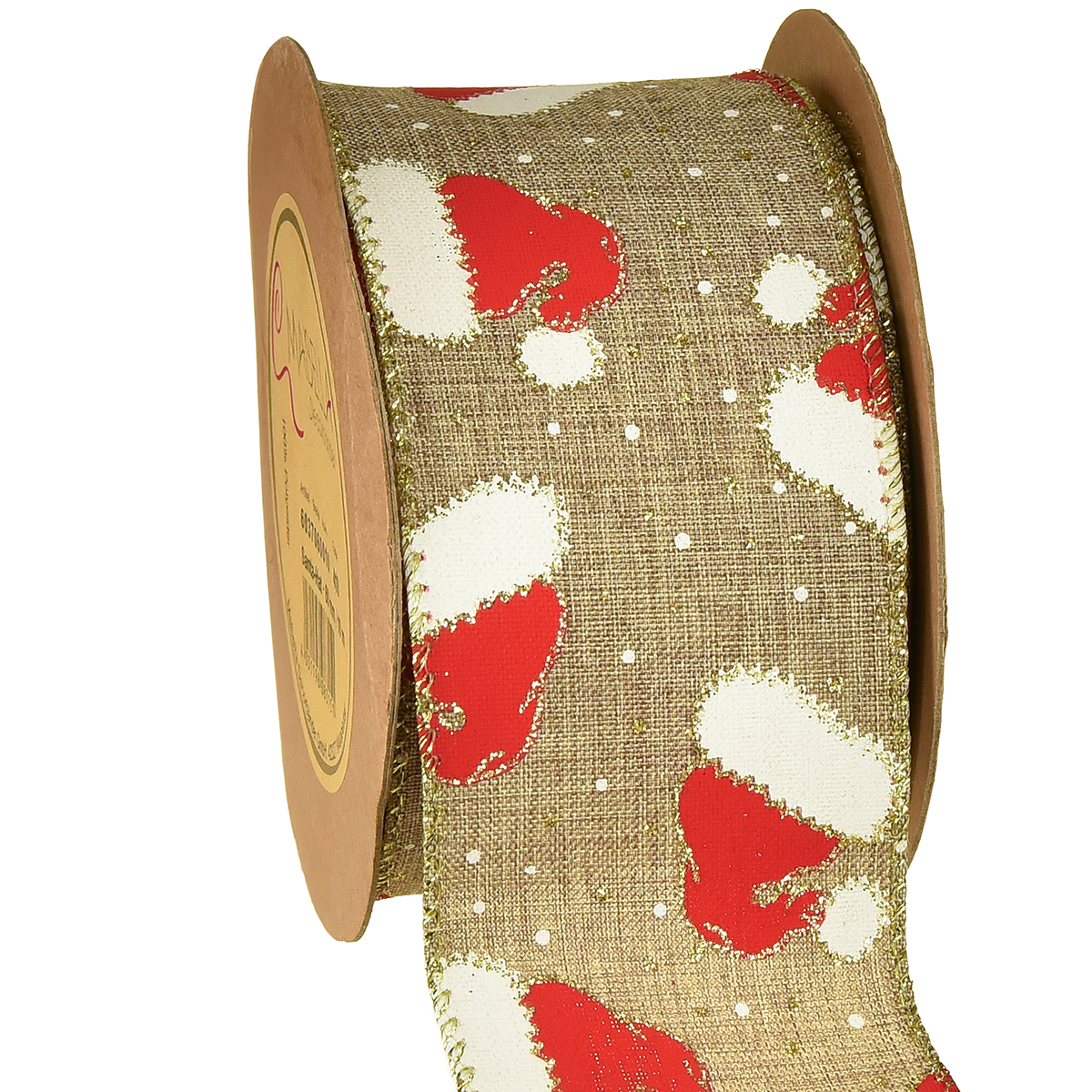 - Red and white Santa hats and gold selvedge
