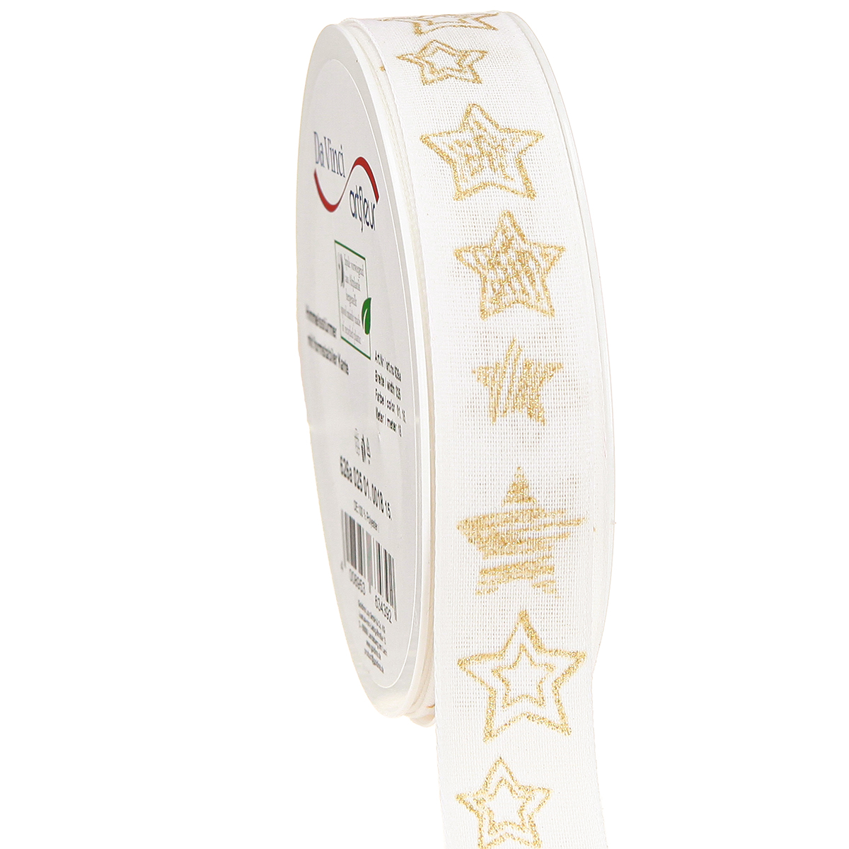Product name: Christmas ribbon with star motif white gold 25mm 18m
