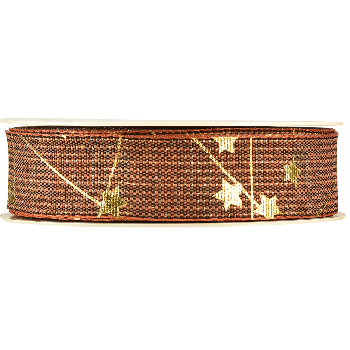 Christmas ribbon with stars decorative ribbon brown gold 25mm 18m