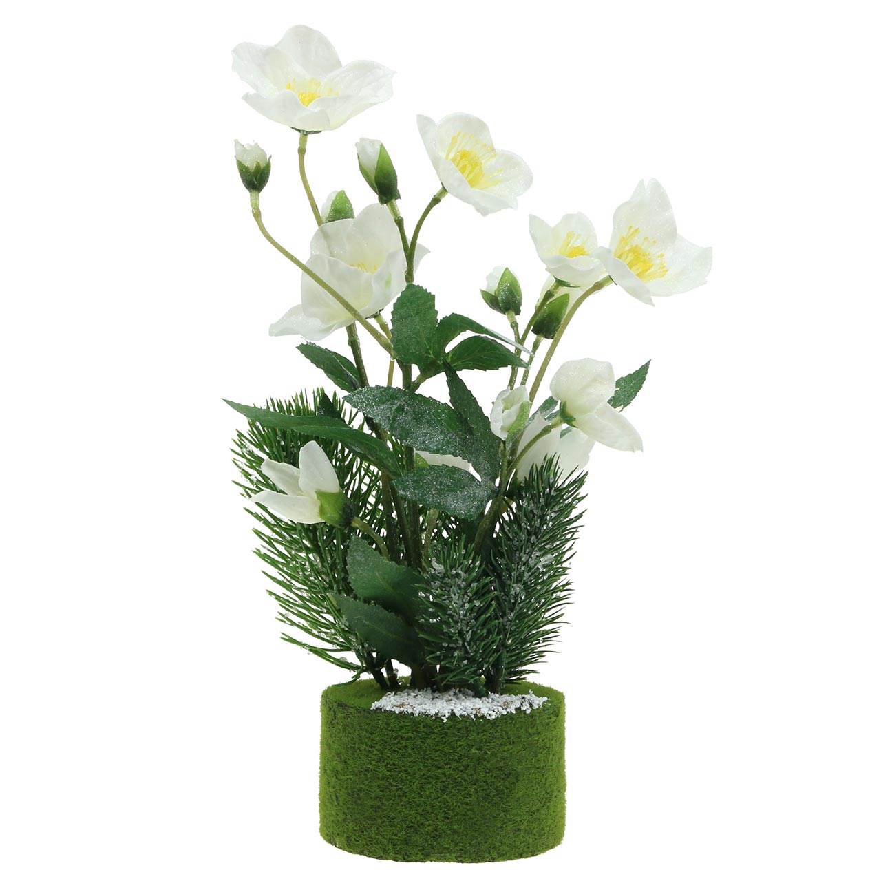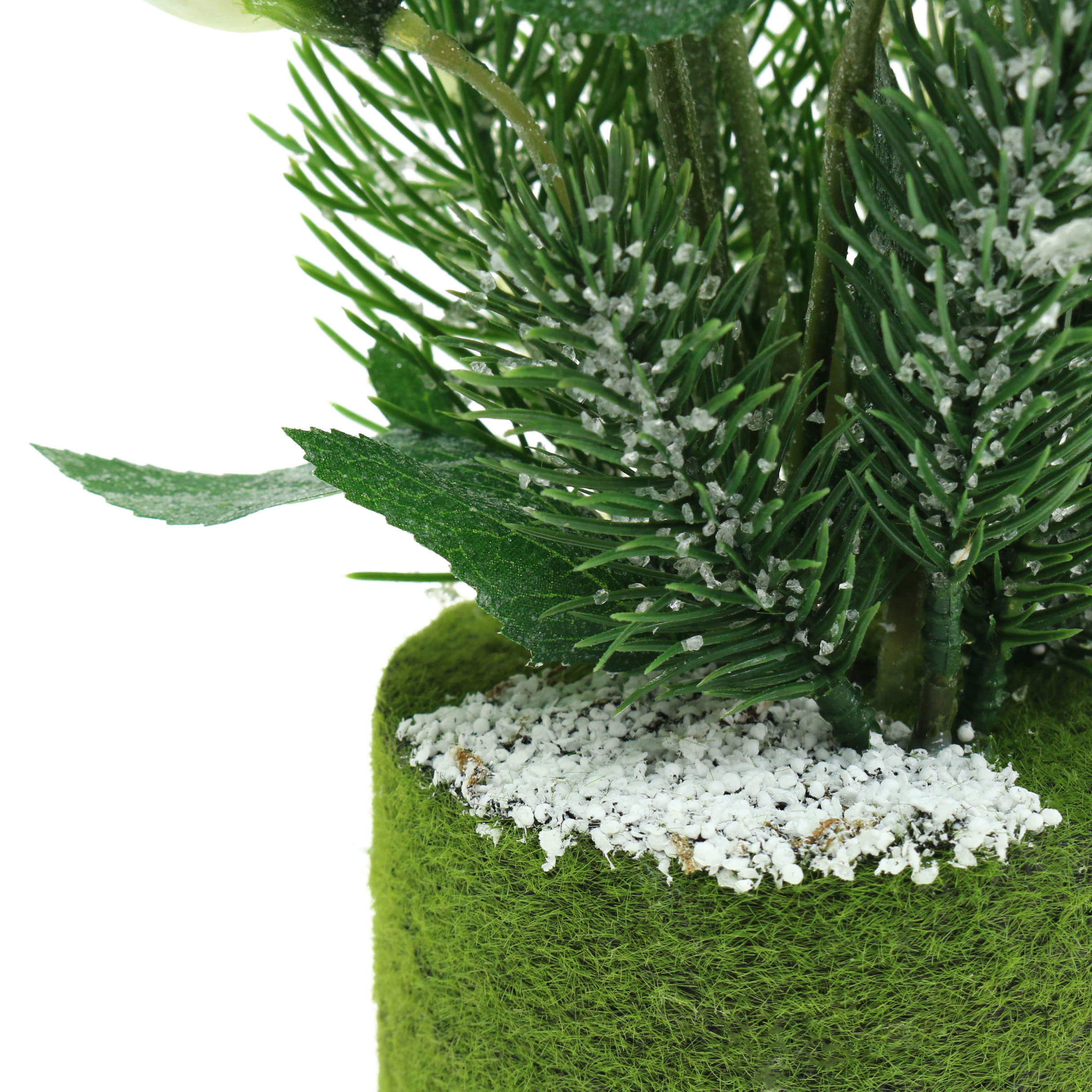 Christmas rose with fir tree and moss balls artificially snowed white 33cm