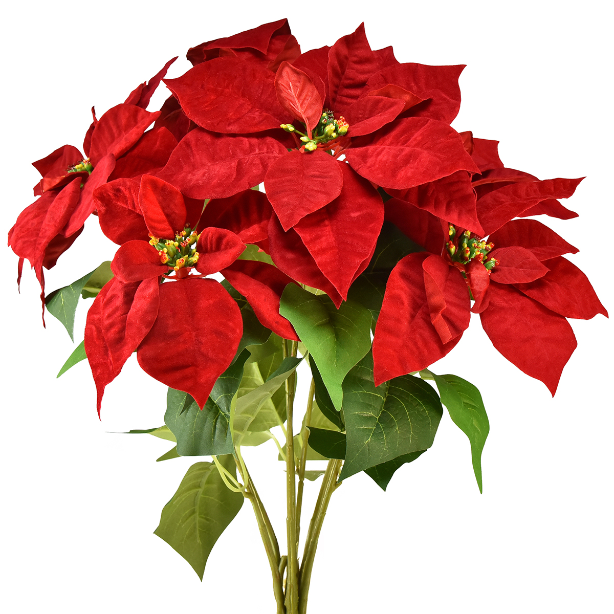 - Artificial poinsettia with velvety red leaves