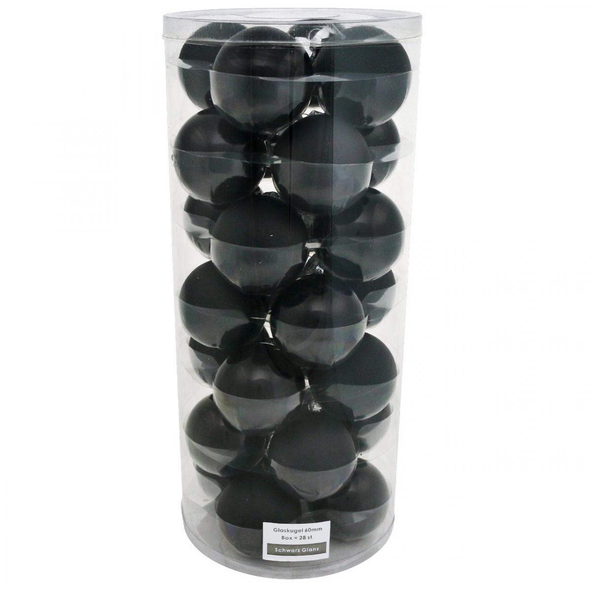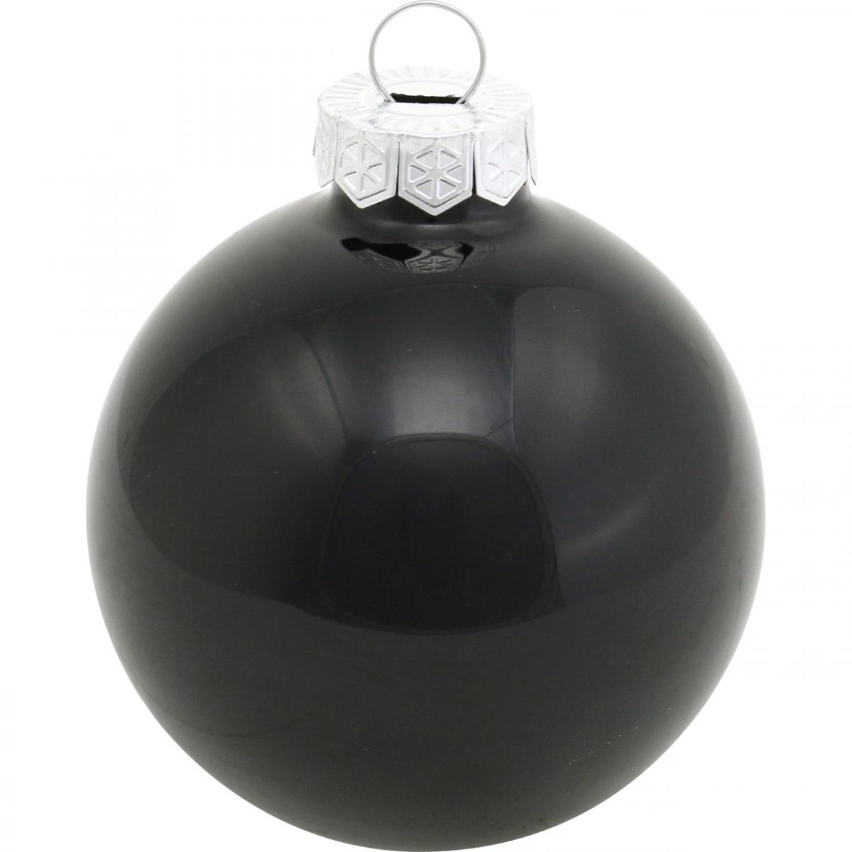 Christmas tree balls, tree decorations, glass balls black H6.5cm Ø6cm real glass 24 pcs