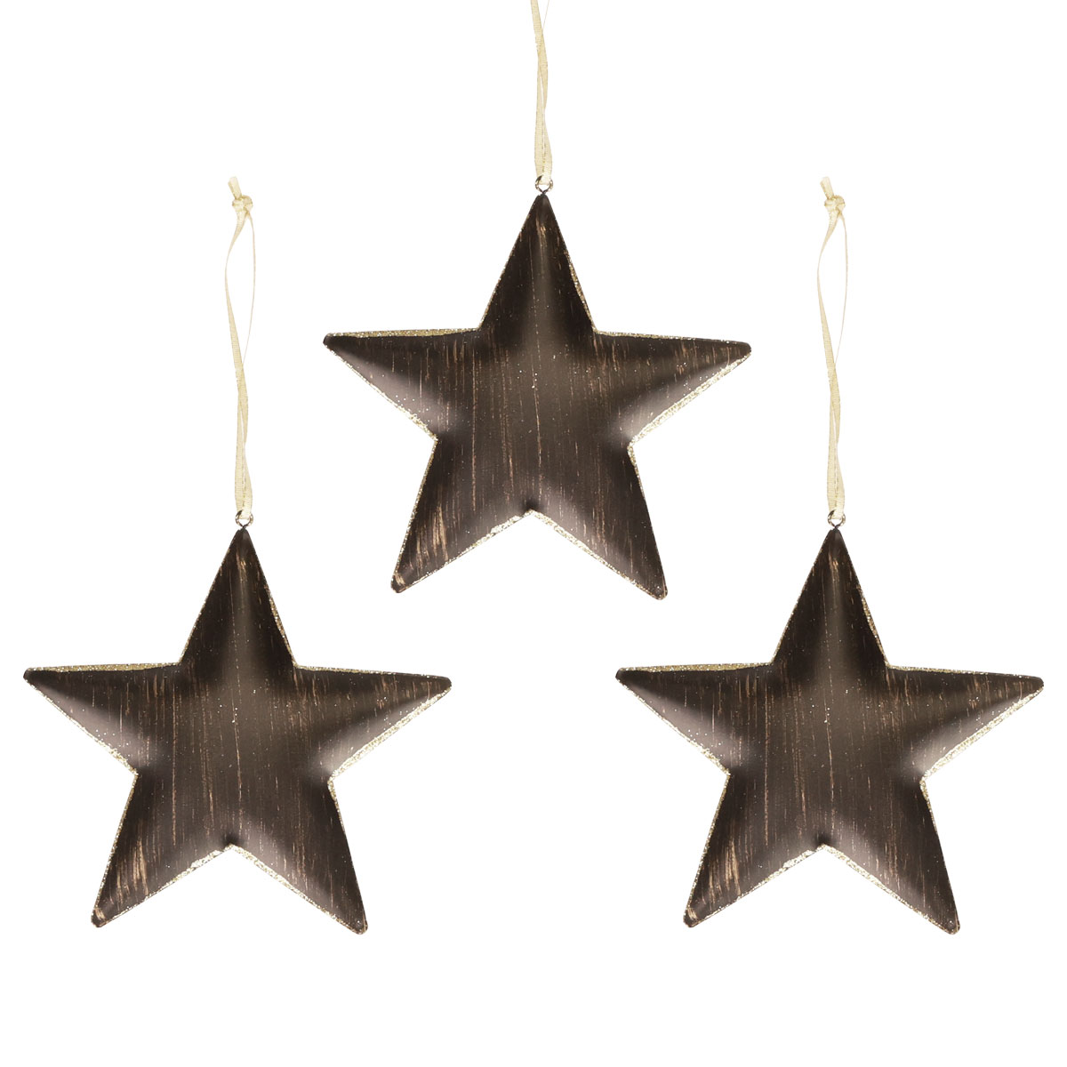 Christmas tree decoration star metal black gold Ø15cm 3 pieces