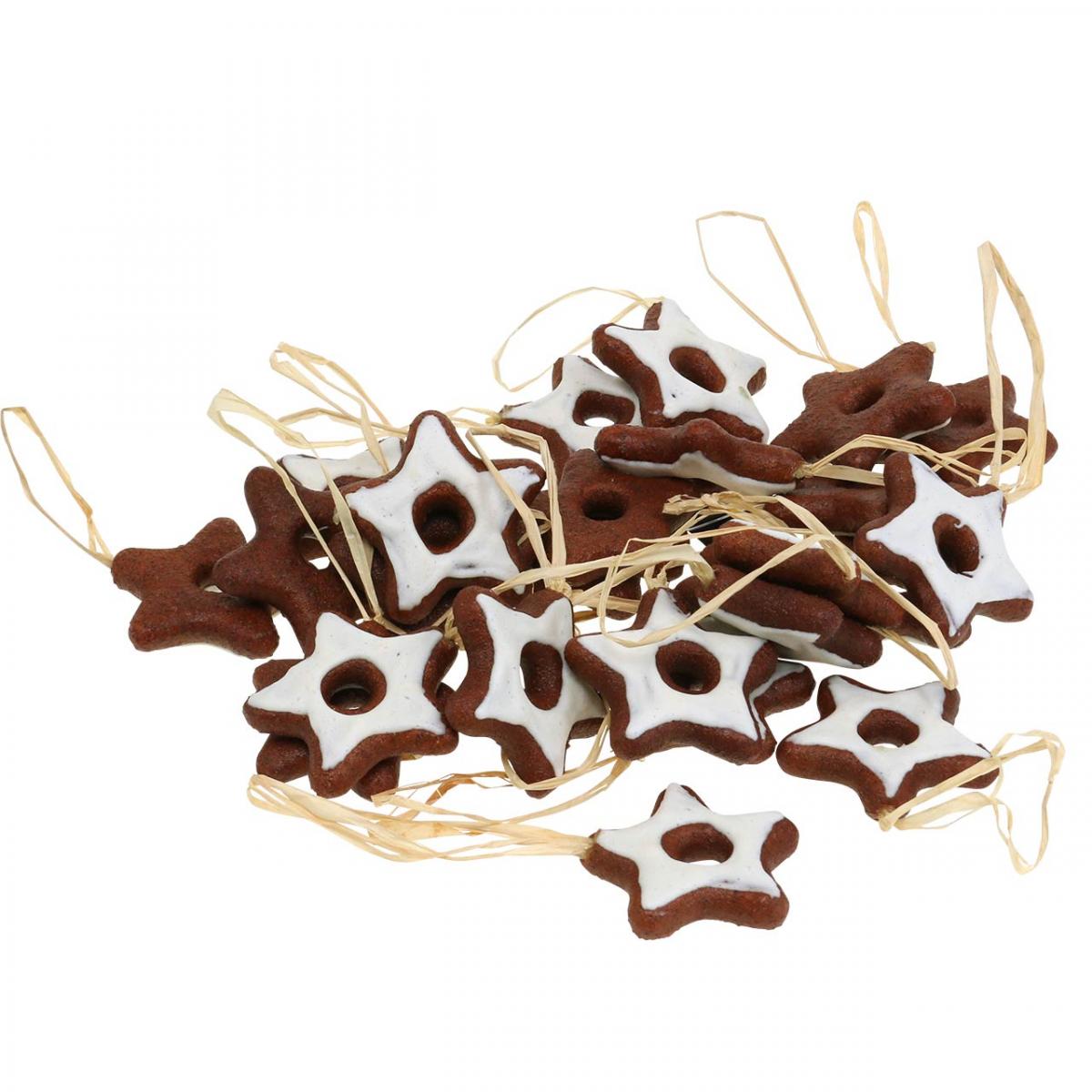 Christmas tree ornaments, cinnamon stars, decorative stars made of plastic, 5cm, traditional Christmas decoration, 24-piece set