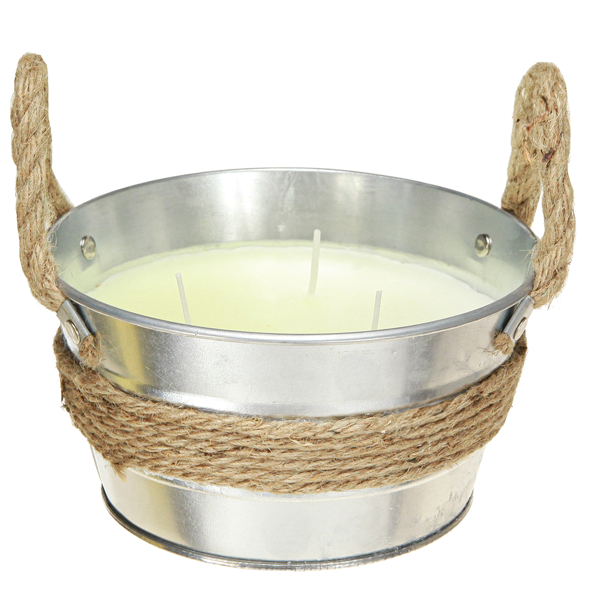 The citronella candle as an anti-mosquito candle with 3 wicks is your ultimate choice for relaxed summer evenings without annoying insects. Specially designed for outdoor use, this candle impresses with its simple yet stylish design that fits perfectly with the country house style. Poured into a robust zinc pot with decorative jute handles, it gives your garden, balcony or terrace a rustic charm. The pleasant citronella scent of this three-wick candle not only keeps mosquitoes away, but also creates a relaxing, feel-good atmosphere.