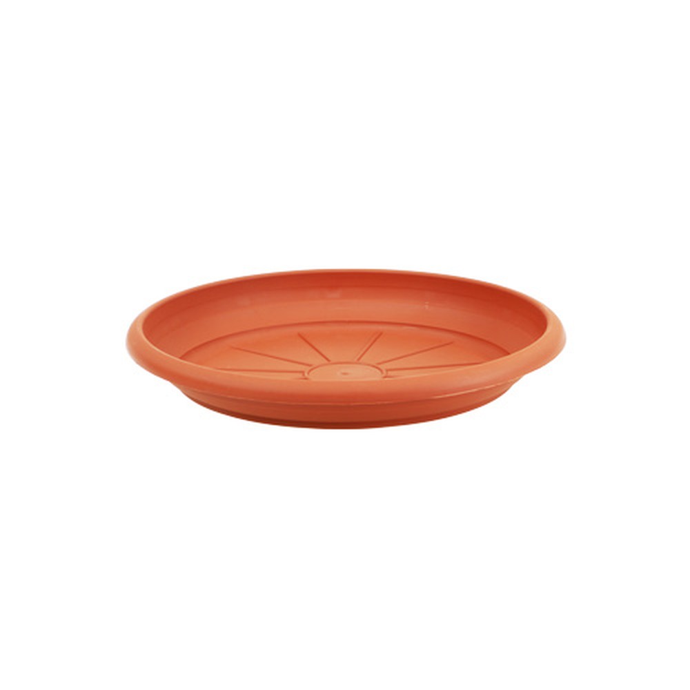 The round plastic plate complements flower pots in a terracotta design particularly well, which ensures an all-round Mediterranean look. With an outer diameter of approximately 18 centimeters and an inner dimension of approximately 16.5 centimeters, the coaster is approximately 3 centimeters high. The diameter of the footprint is approximately 13 centimeters.