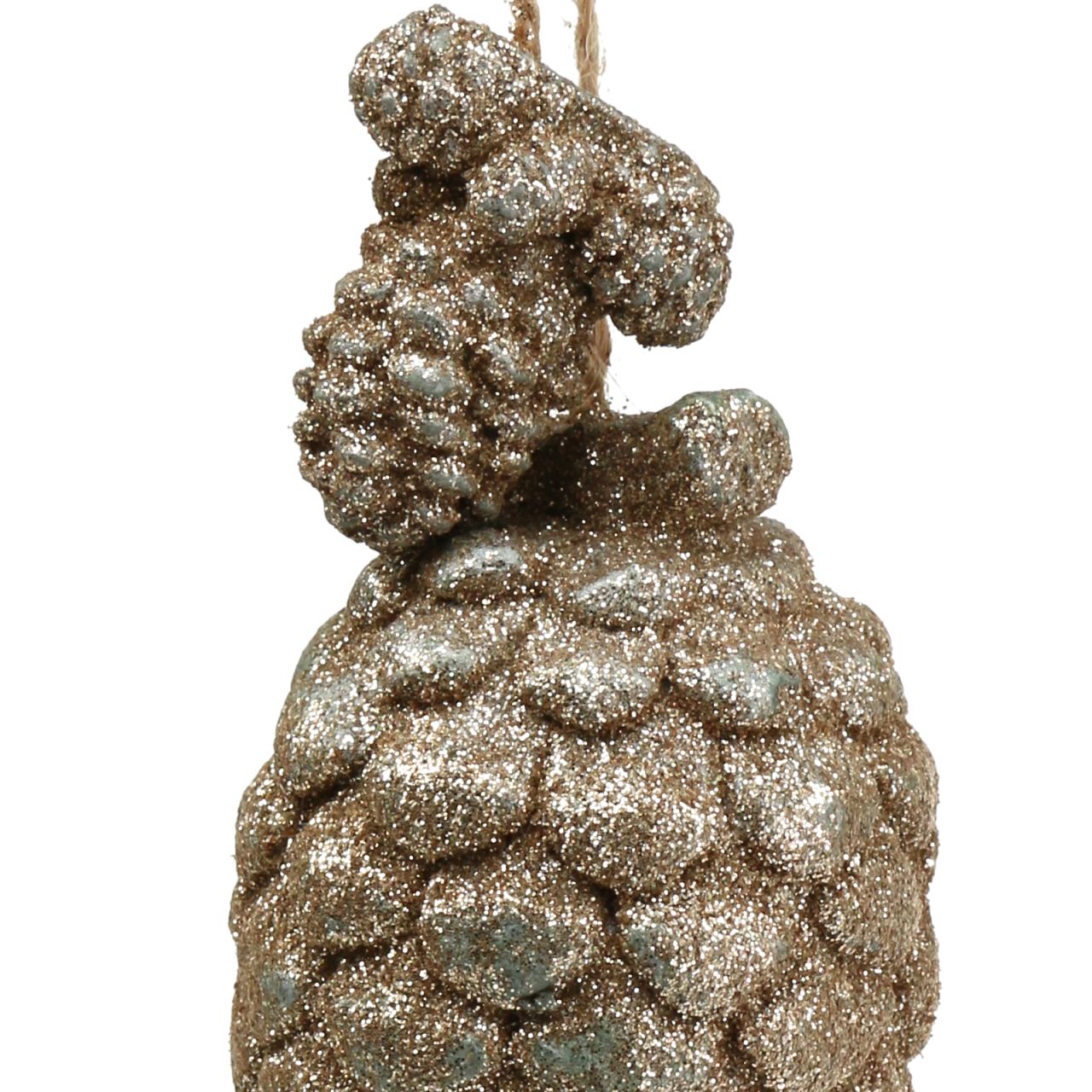 Classic and modern at the same time, these Christmas hangers from the VIANA product range combine the cone shape of yesteryear with the glitter of today. The result is a Christmas tree hanger that is reminiscent of the magical Christmas party with the grandparents and at the same time fits into your trendy living room in vintage style. This contrast is particularly effective in connection with the tried and tested Christmas balls in red and the rich green of your Christmas tree. Each gold cone consists of two parts, a large and a small one, connected with a coarse bast cord. When hung together, a wonderful little ensemble is created that will make your Christmas decorations sparkle.