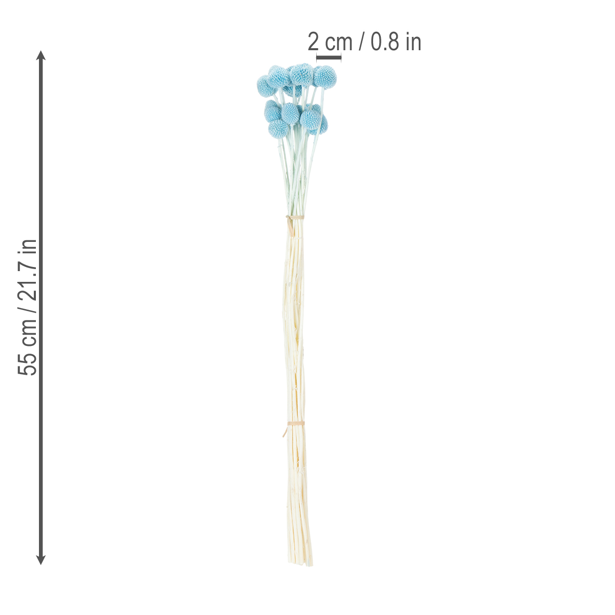 With their intense blue color and a length of 55 centimeters, these Craspedia dried flowers are a true highlight in any vase. The heads have a diameter of two to three centimeters, giving this floral decoration a charming yet subtle texture. They are perfect for minimalist vases or as a creative addition to floral arrangements. Whether you're looking for a modern dried flower decoration for your living room, want to create colorful table arrangements for a celebration, or are planning an original DIY project – with these Craspedia flowers, you'll always achieve a stylish display.