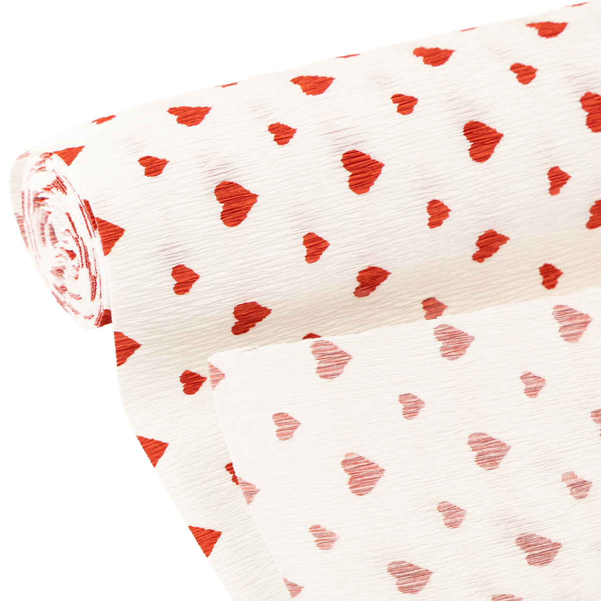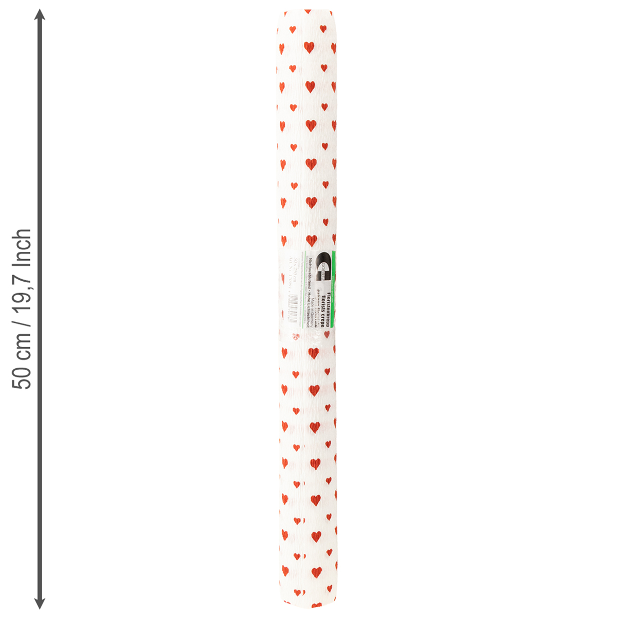 Crepe paper with hearts Florist's crepe Mothers Day red, white 50 × 250cm
