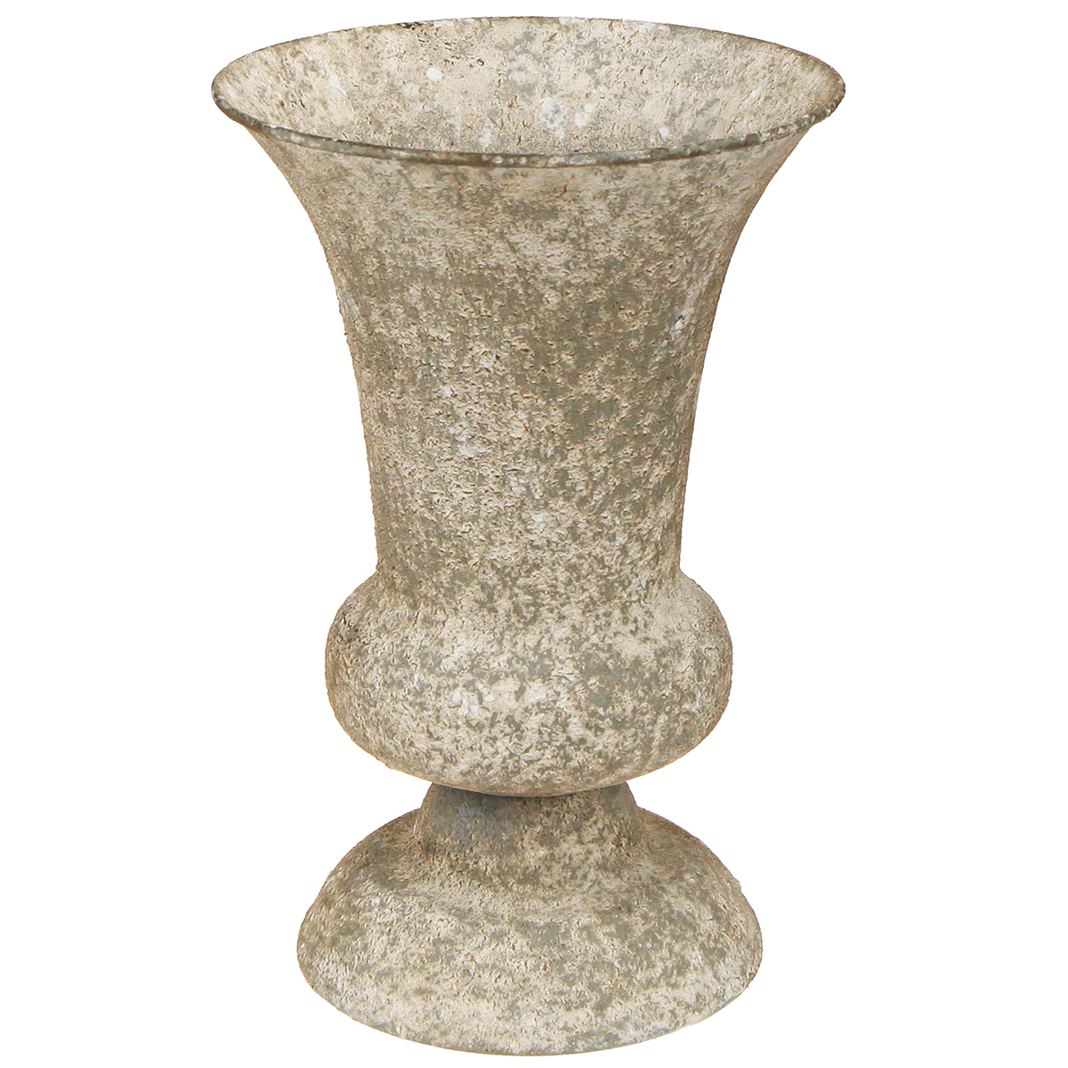 Experience the timeless beauty of our metal goblet vase in an antique design. This vase combines rustic elegance with antique charm and is a true gem for lovers of unusual decorations. The antique look in a harmonious white-brown-gray tone gives every interior a special character. The rough surface and the artificial signs of age make this vase a unique decorative piece that looks perfect in both modern and classic living environments. With a diameter of around 16.5 cm and a height of around 24 cm, this vase on its solid base not only offers stability, but also versatile uses. Whether as a table decoration in your living room or as a stylish eye-catcher in the garden, this goblet vase sets accents. It is ideal for planting or for creative dry arrangements that express individuality and a sense of style.