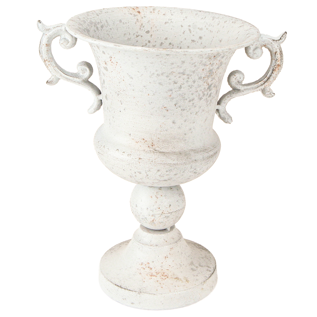 Cup with handle metal decorative planter grey white H29.5cm
