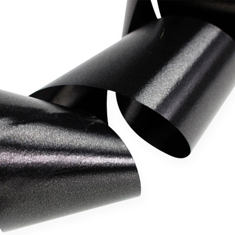The black curling ribbon is about 50 millimeters wide and about 100 meters long. It is made of 100% polypropylene and is wound on a small cardboard roll.
