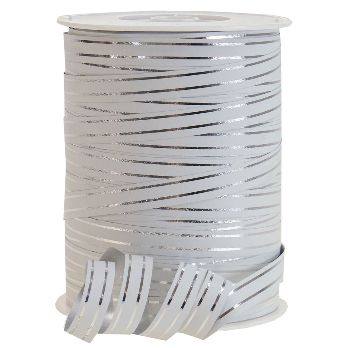 Curling ribbon gift ribbon white with silver stripe 10mm 250m