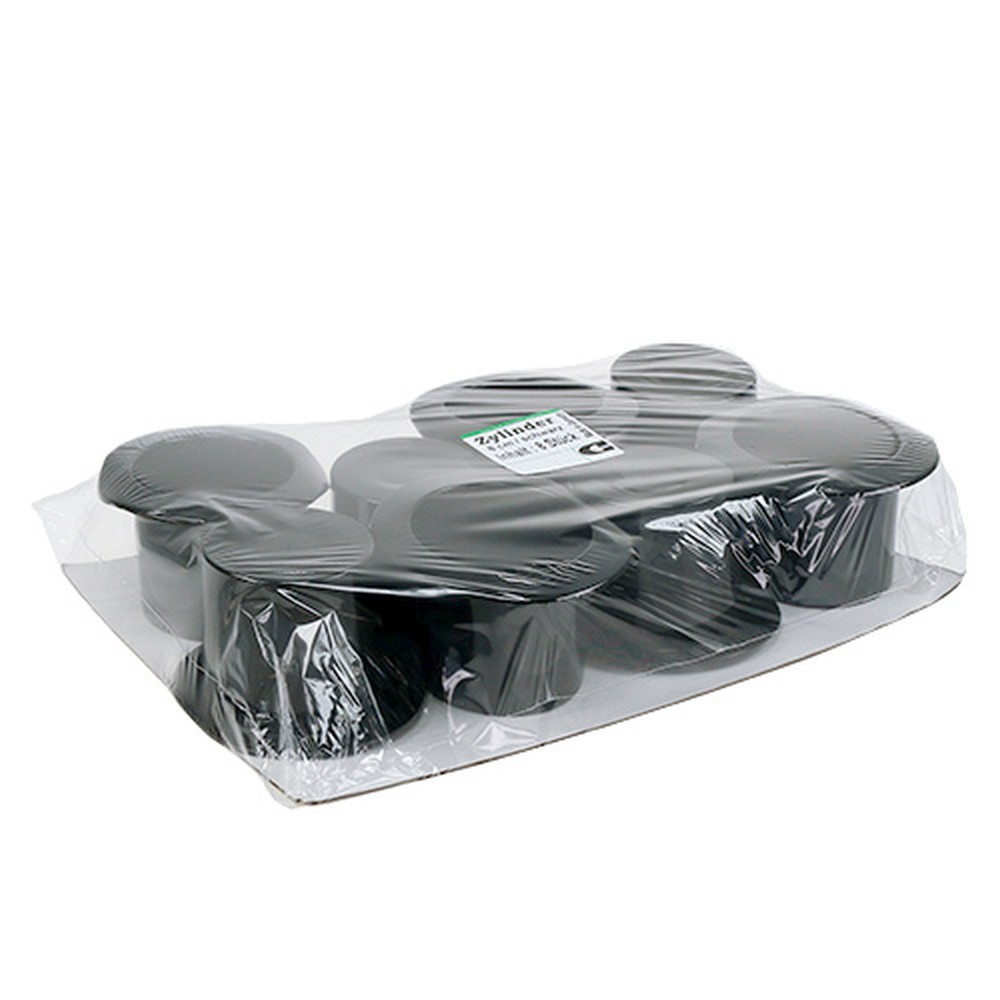 The cylinders in black are offered in a set of 8 in total. The hats have a height of approximately 7.5 centimeters, with the footprint being approximately 7.5 x 8.5 centimeters. The external dimensions are approximately 11.5 x 13.5 centimeters and the internal dimensions approximately 8 x 9.5 centimeters.