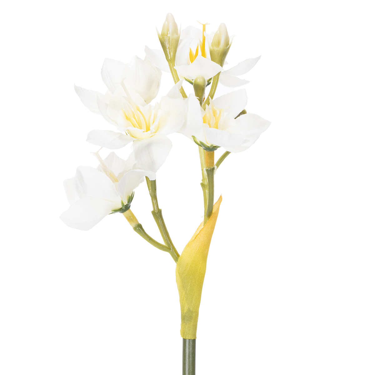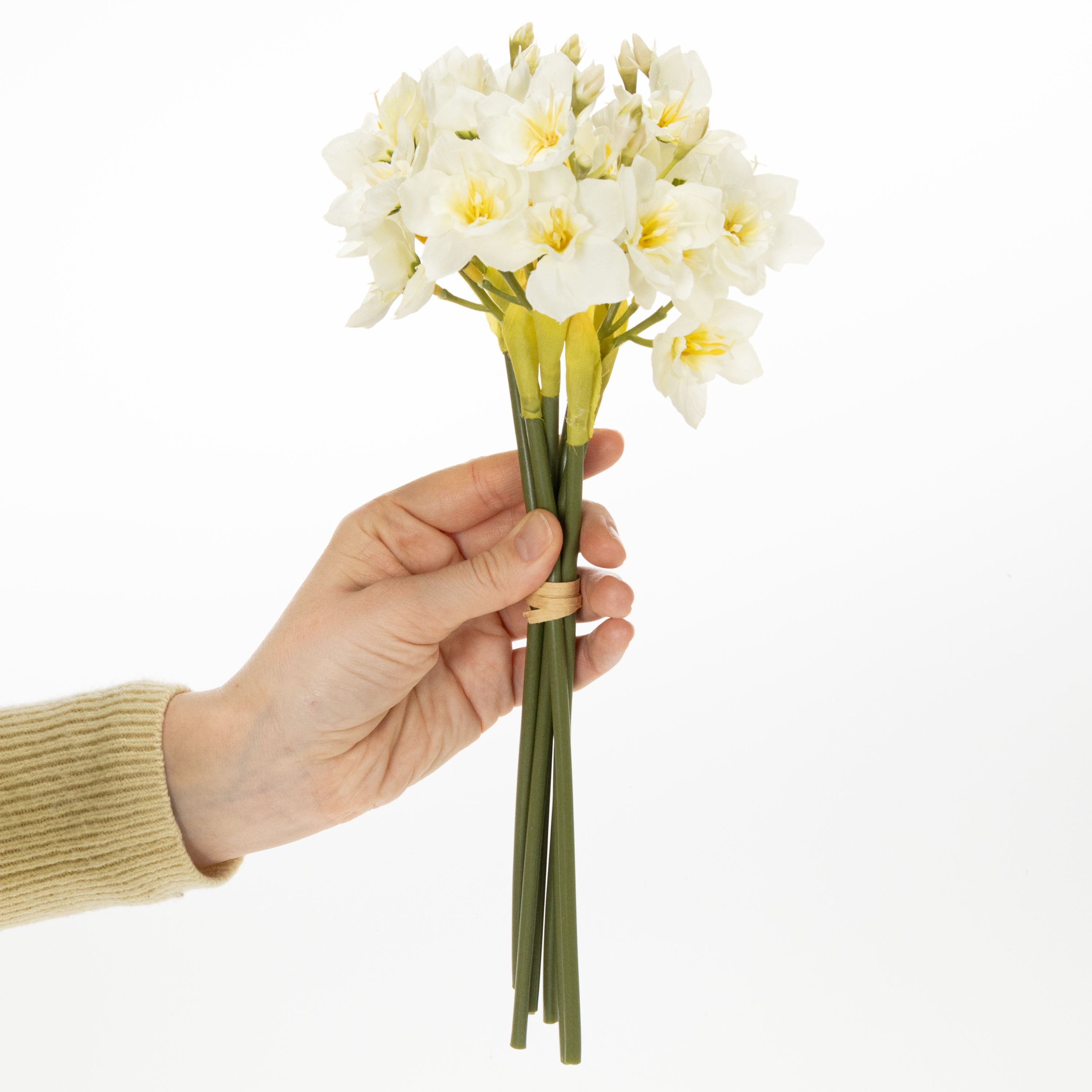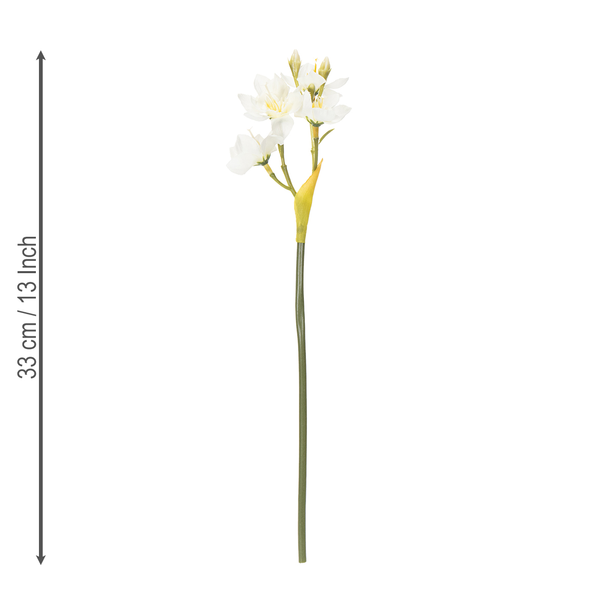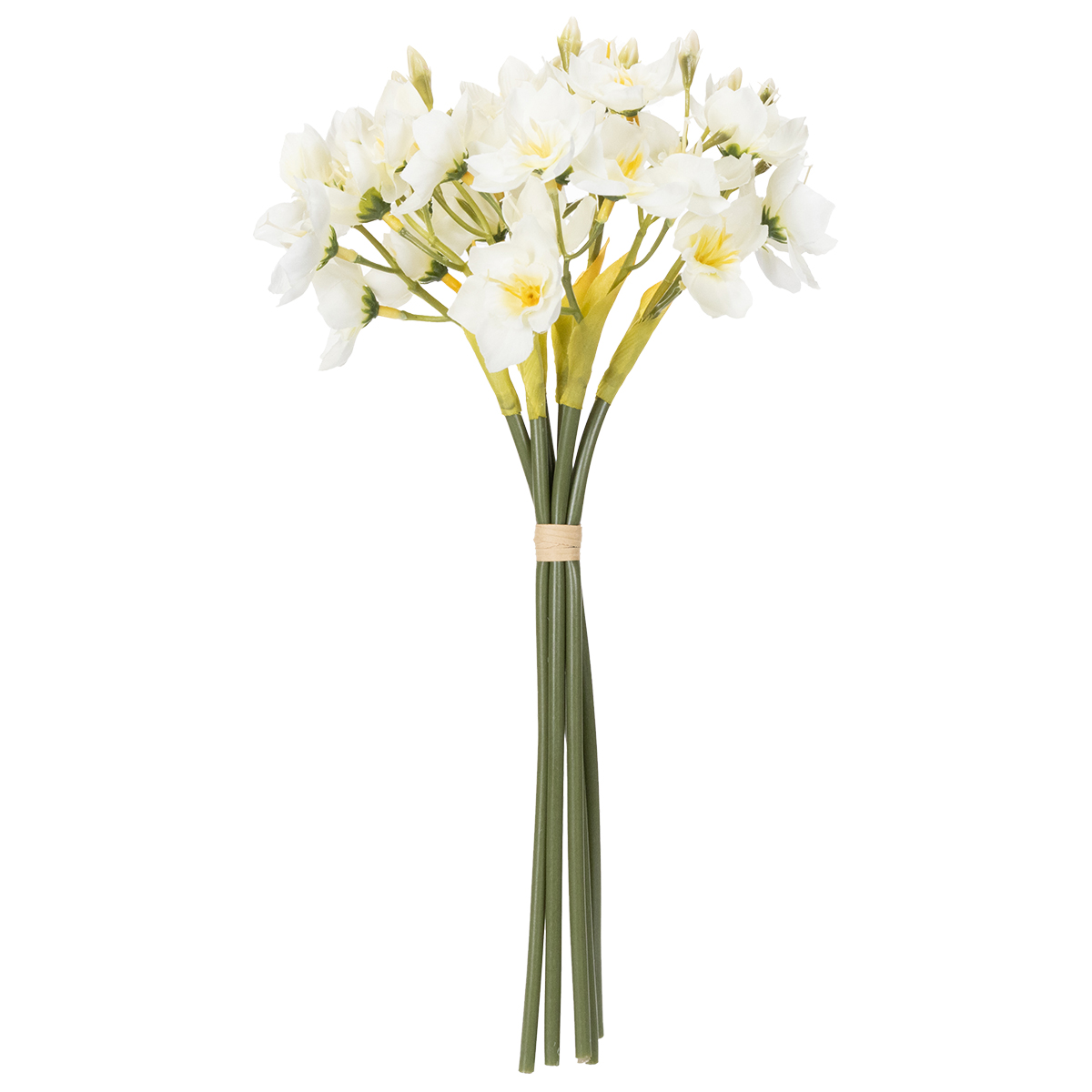 The perfect accent for your wedding or seasonal floral decorations: Our daffodil branch combines beauty and practical versatility. Imagine how these artfully crafted white blossoms will complement your table setting or create a romantic bridal bouquet. Your guests will be delighted! At 33 cm long and with a lifelike design, these artificial daffodils look as if they've been freshly picked – and all without any maintenance.