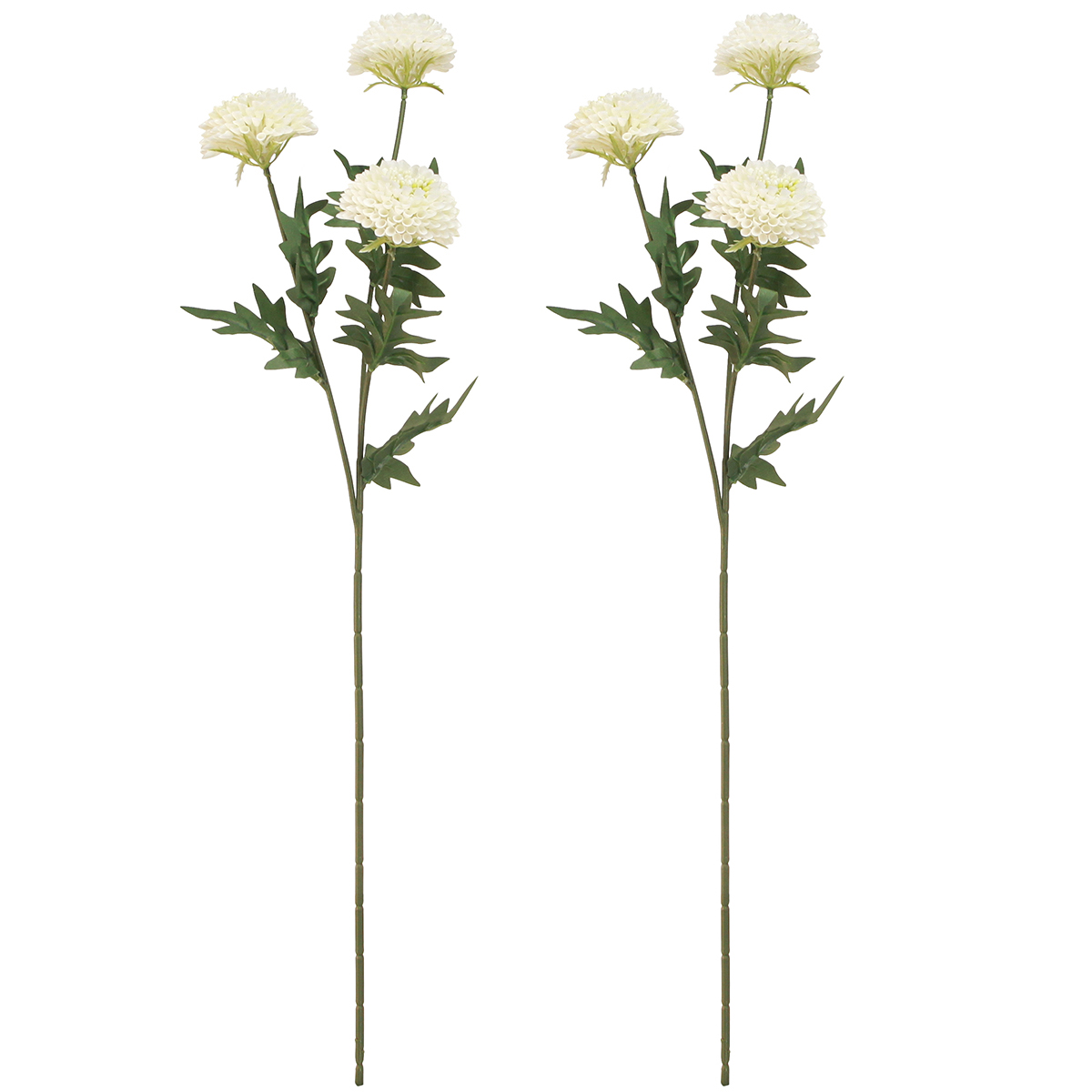 Experience the flawless beauty and versatility of our white decorative flowers. These artificial dahlias impress with their detailed reproduction of nature: Each of the numerous small, tubular individual flowers together forms a magnificent white blossom and creates an authentic flair in your home. The bunch contains three stems, each with three branches. Each stem has three flowers and six leaves, the surface of which is made of fine fabric and underlines the high-quality workmanship of this decorative element.