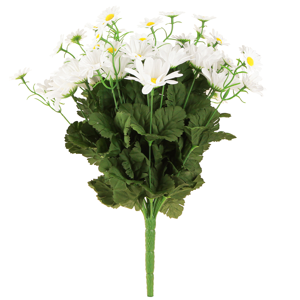 The daisies bouquet in white has a total length of about 45 centimeters and the flower heads are about 6 to 8 centimeters in diameter.