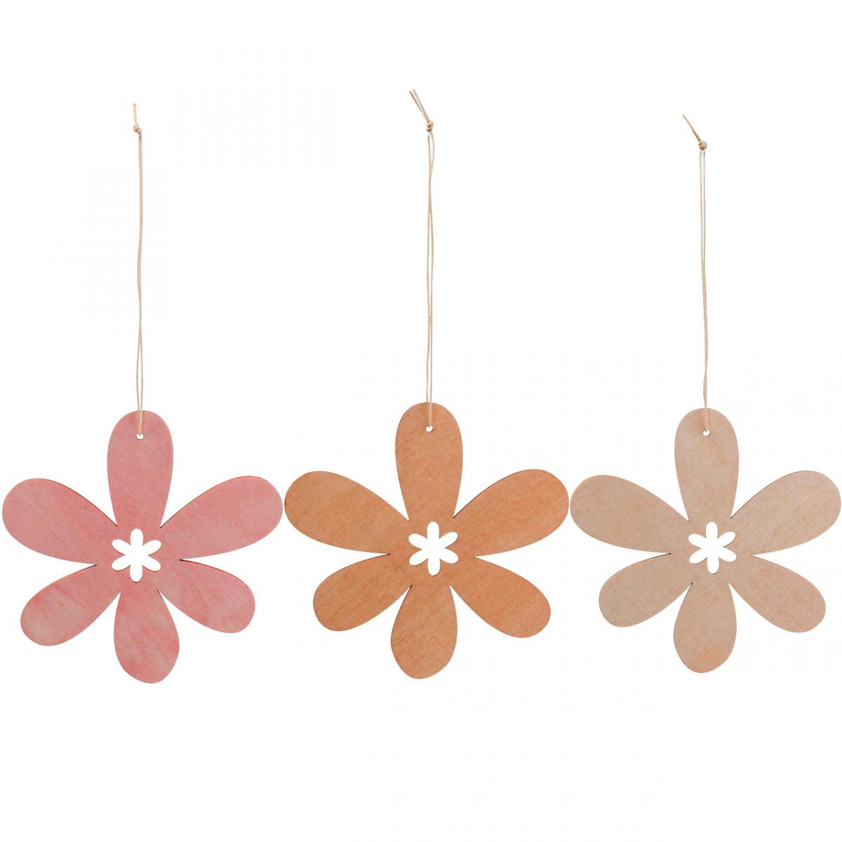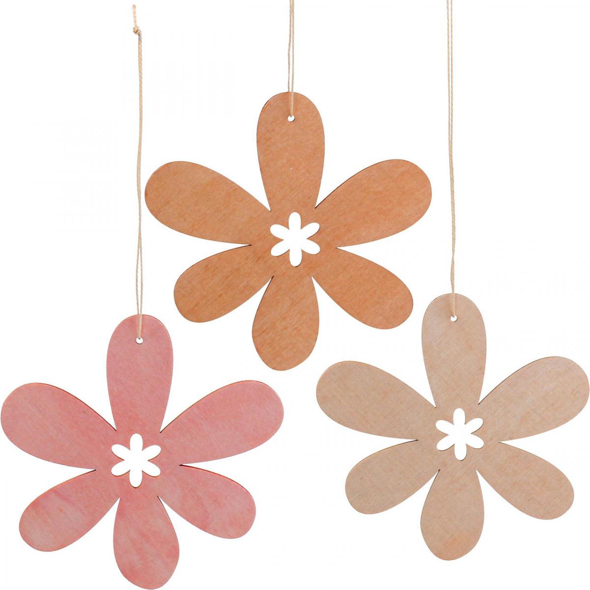 Product name: Deco flower wooden pendant wooden flower orange/pink/yellow 12 pieces