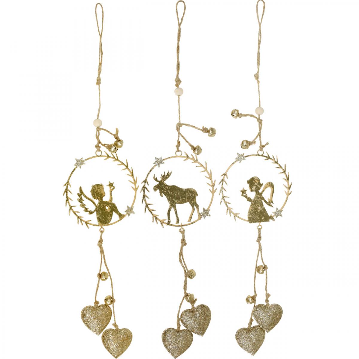 Deco hanger window, metal wreath Advent, angel, reindeer Ø9cm set of 3