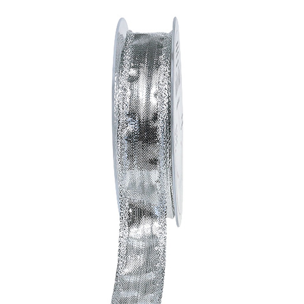 Deco ribbon silver with wire edge 25mm 25m