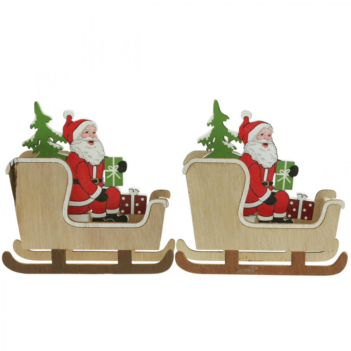 Deco sleigh with Santa Claus Christmas sleigh 10cm 2pcs