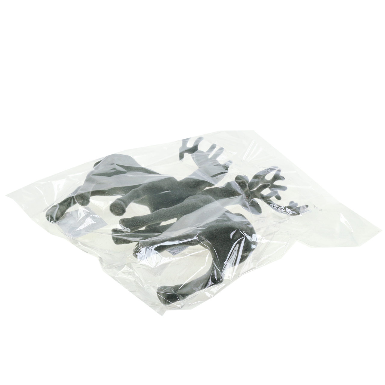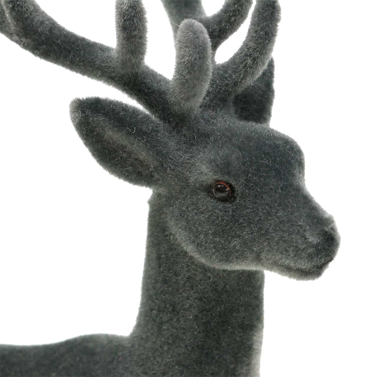 You get two of the gray flocked deer in an assorted set: The two reindeer differ in their posture, antlers and even in their facial expressions! The decoration figure is approximately 20 centimeters high with a length of approximately 15 centimeters.