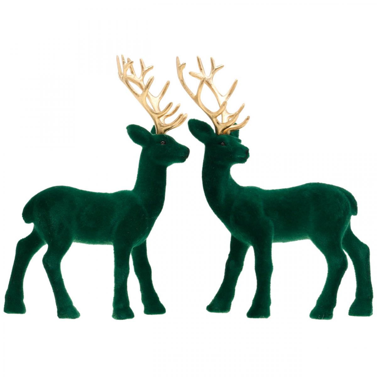 Decoration Deer Green and Gold Christmas Decoration Deer Figures 20cm 2 Pcs
