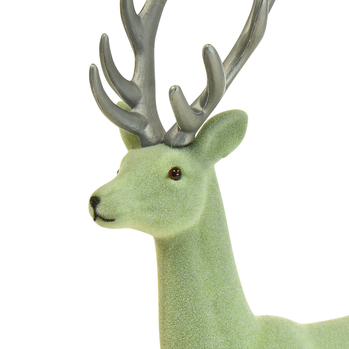 The deco deer stands quietly in green. Remaining in the middle of the aisle, one run is set before the other. The gray antlers harmonize with the sage green of the deer. Its crown is made with great detail and the deer decoration as a whole also has familiar details.