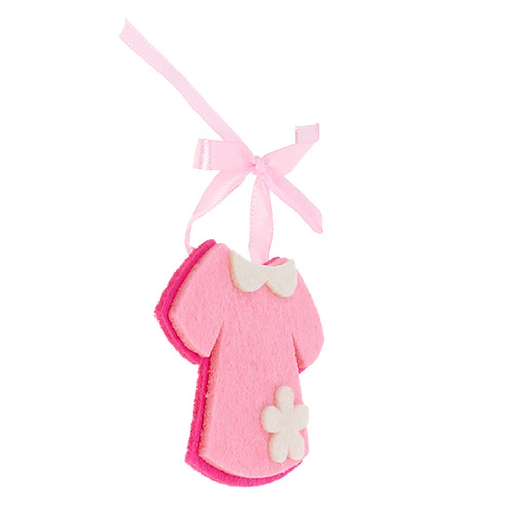 The gift tags in the form of small dresses are made of pink polyester felt and are offered in a set of 20 pieces. Each pendant has a loop made of satin ribbon and is approximately 7 x 5.5 centimeters in size.