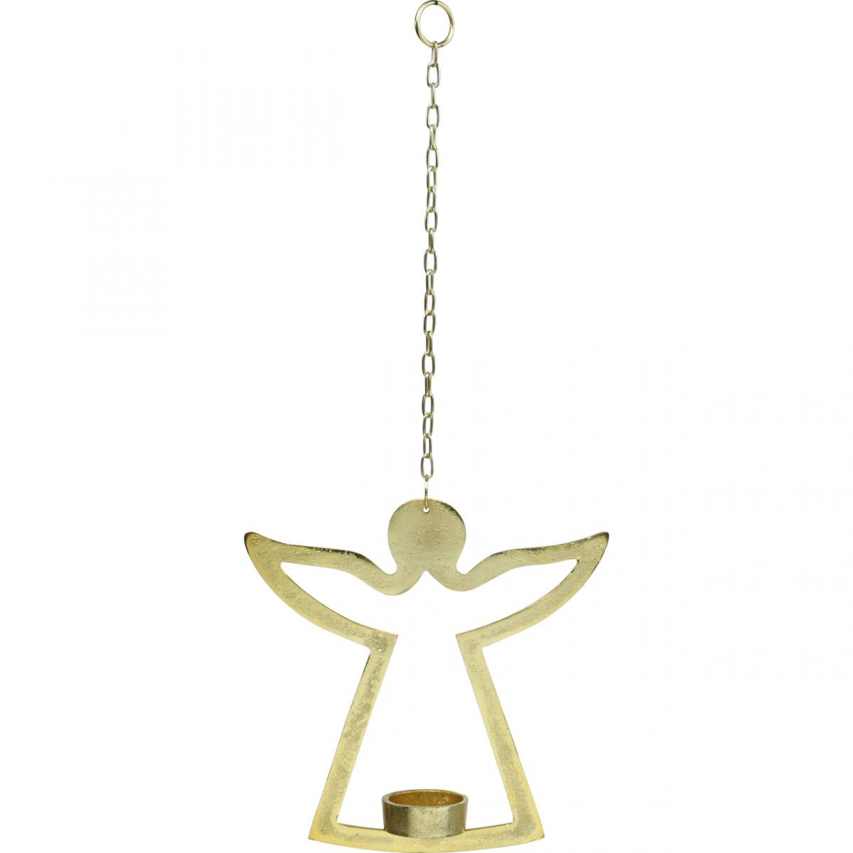 Product name: Decorative angel, tealight holder to hang, metal decoration golden H20cm