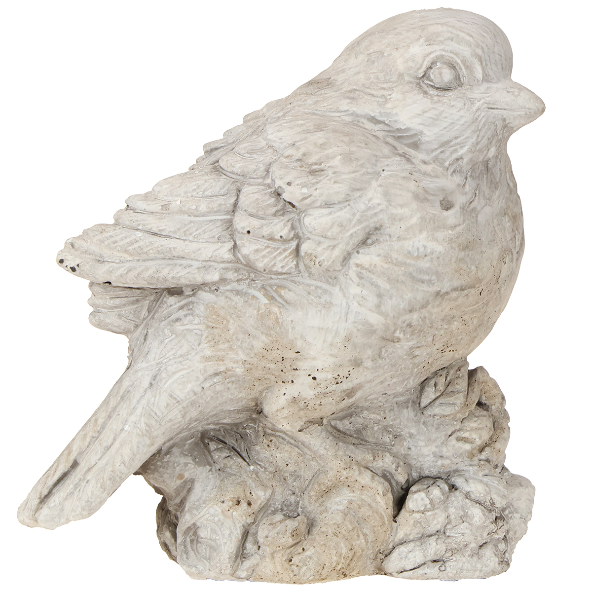 Decorative bird figurine sparrow cast stone white washed H12.5cm